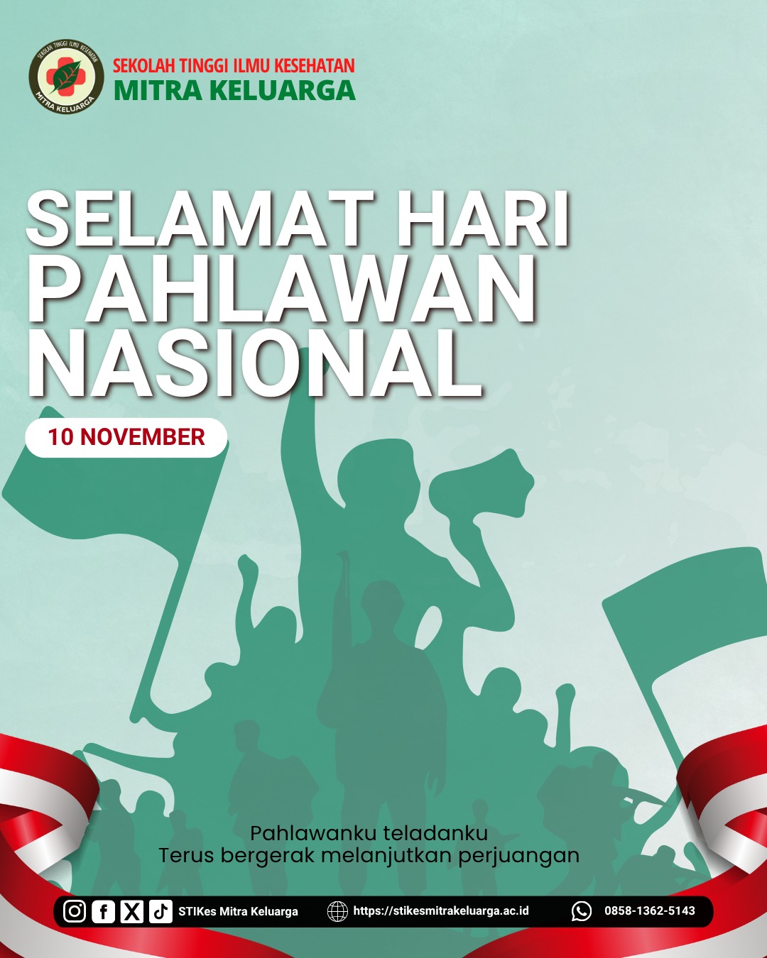 HARI PAHLAWAN NASIONAL 2025webmaster | Posted on 11/10/2025 | Mereka berjuang dengan senjata, Kita berjuang dengan ilmu dan karya. Selamat Hari Pahlawan! Saatnya kita jadi pahlawan masa kini lewat dedikasi di dunia kesehatan. #HariPahlawan #PahlawanMasaKini #STIKesMitraKeluarga #BanggaJadiTenagaKesehatan Post Navigation ← Previous PostNext Post →